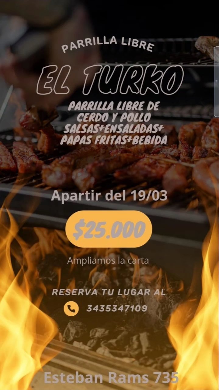Incluye: Entradas, Variedad de carnes asadas a la parrilla, Bebidas, Postres